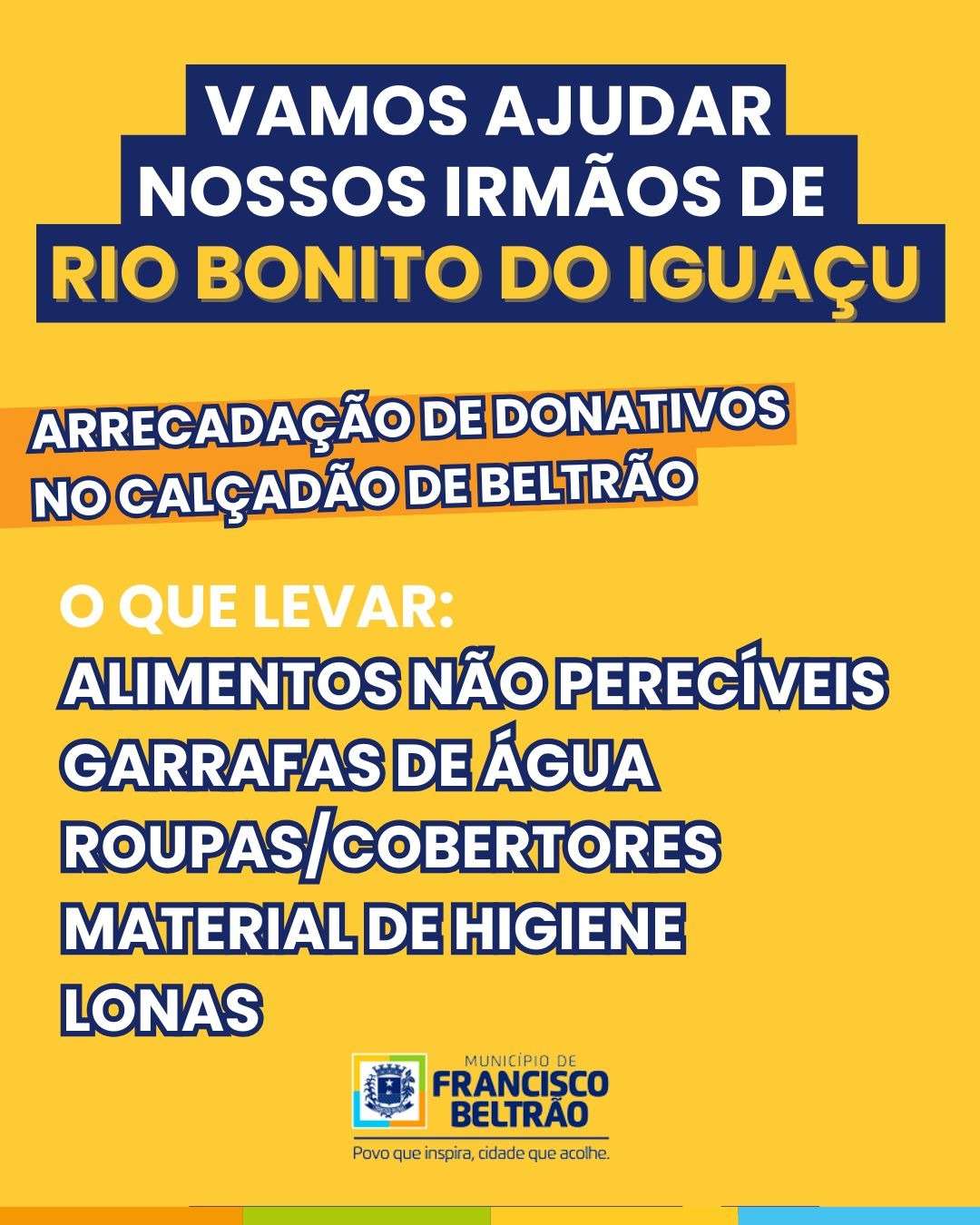 A Prefeitura de Francisco Beltrão está iniciando uma campanha para coletar donativos às pessoas a...