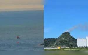 Um incêndio atinge a vegetação do Morro do Boi, em Caiobá, município de Matinhos, no litoral do P...