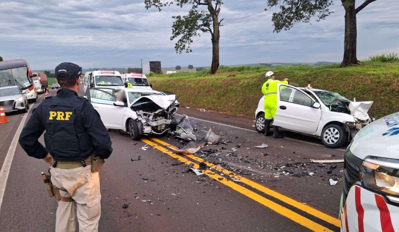 Dois carros bateram de frente na BR-277, em Céu Azul, no Oeste do Paraná, na manhã desta segunda-...