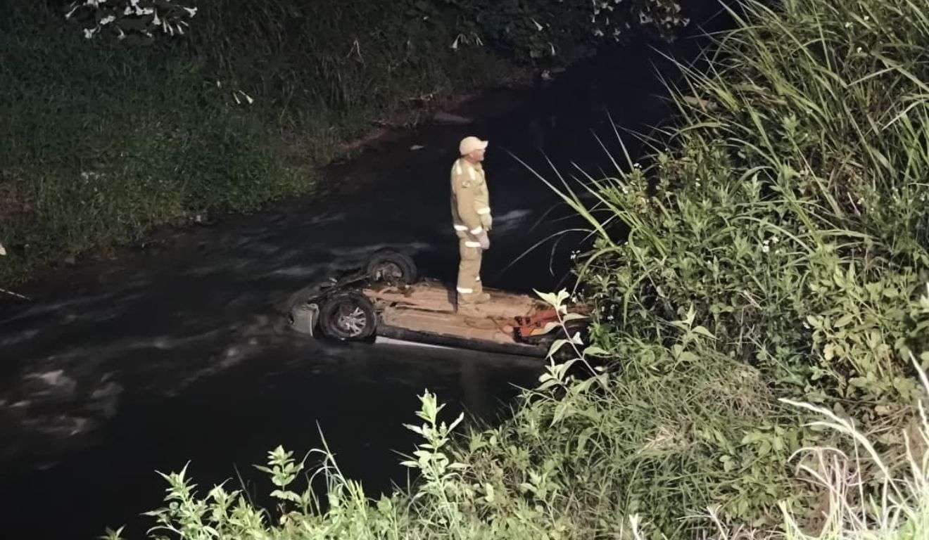 Um motorista bêbado foi preso após causar uma sequência de acidentes e cair com o carro dentro do...