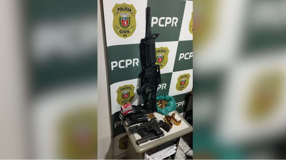 Fuzil, pistola, revolver e munições foram apreendidas, pela Delegacia de Polícia de Ibiporã, ...