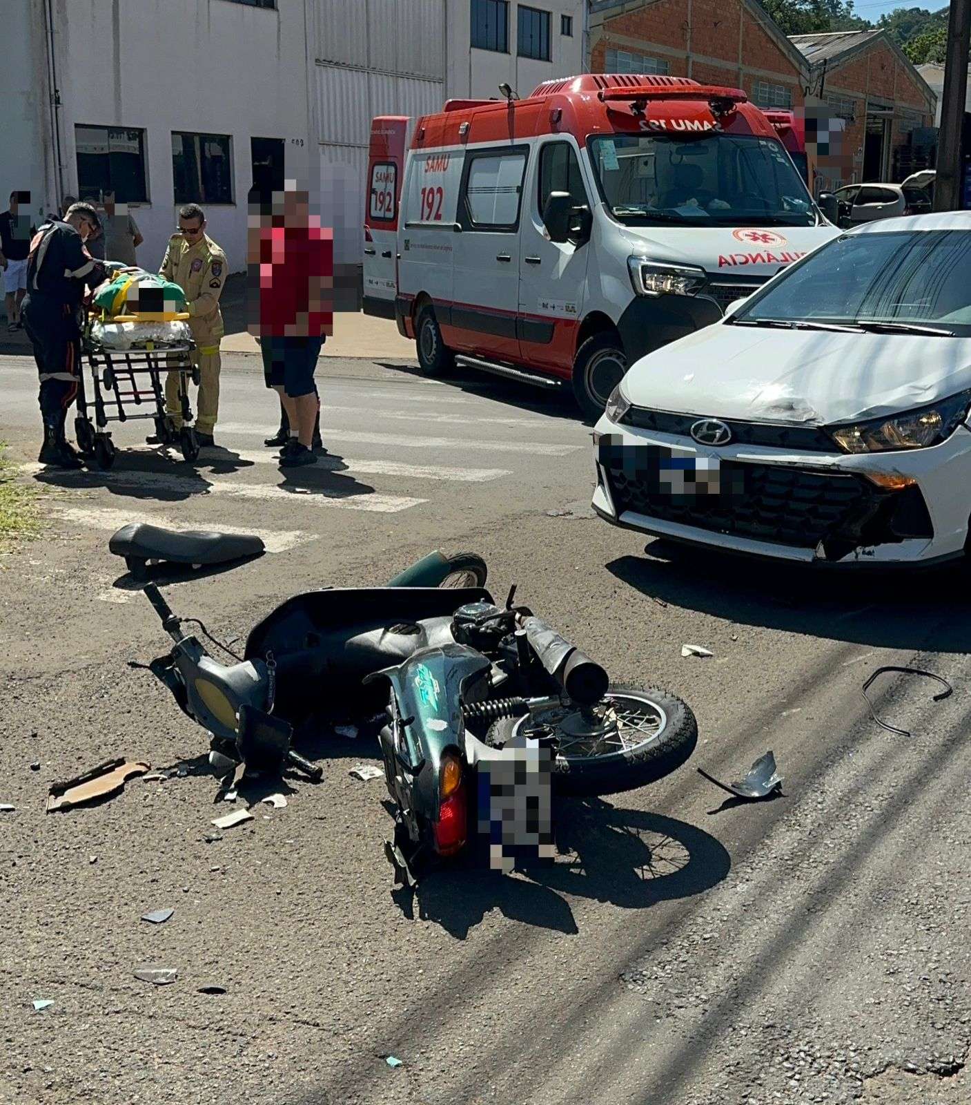 Um acidente envolvendo uma motocicleta Honda Bis e um carro HB20 foi registrado na manhã deste sá...