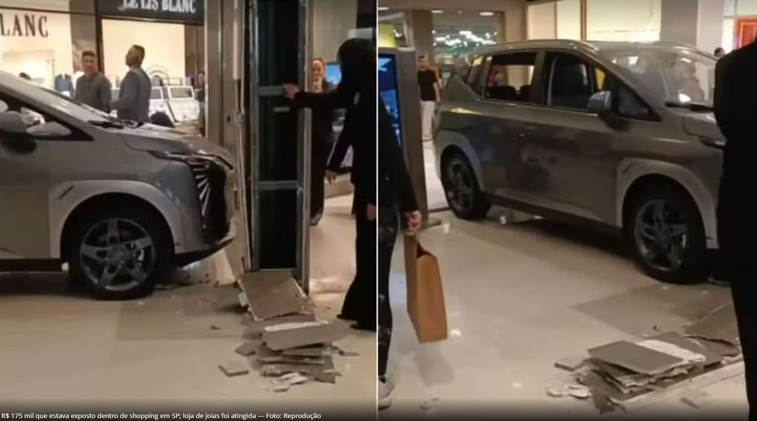 Carro ficou pendurado no viaduto da Avenida Juscelino Kubitschek, em Londrina, norte central do P...