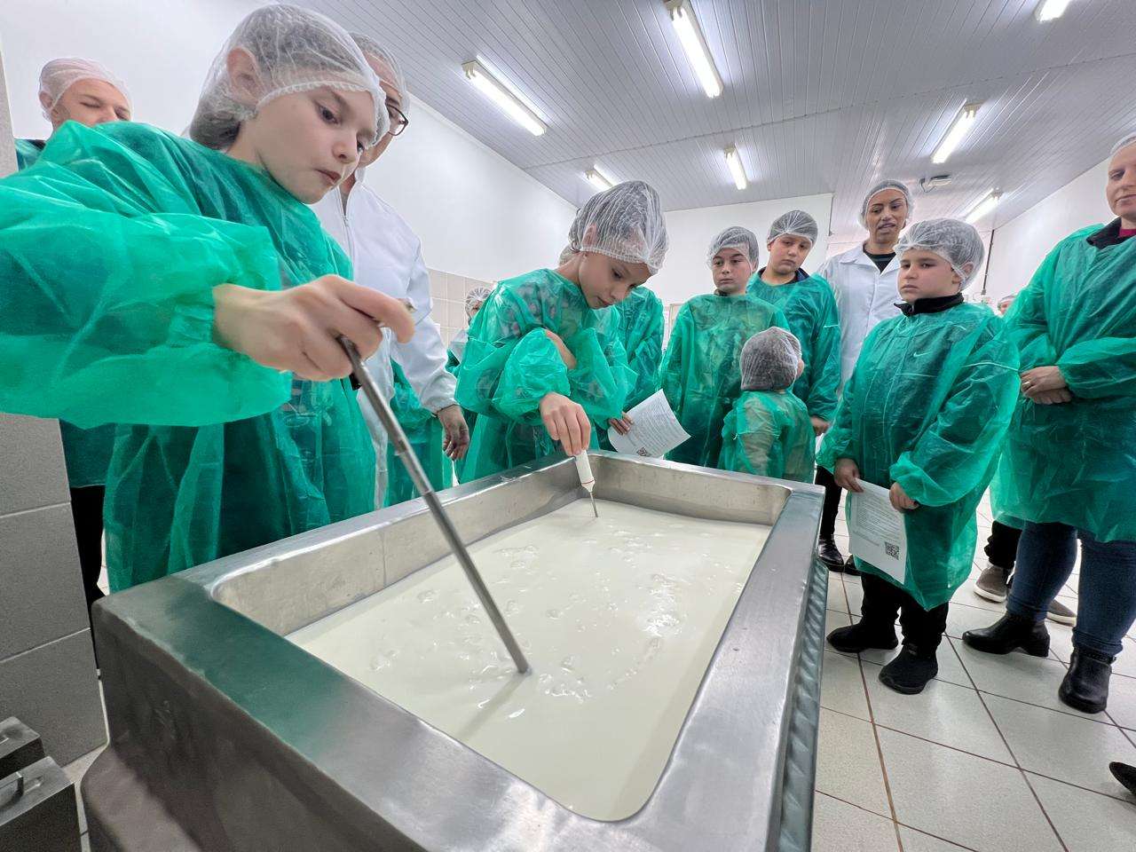 Uma atividade prática envolveu as crianças que integram o Clube da Bezerra, nesta semana. Os pequenos participaram do minicurso sobre a fabricação de queijos e aprenderam o processo para transformar leite em um produto com alto valor. A iniciativa foi da Secretaria Municipal de Agricultura, em parceria com o projeto de extensão Leite e Queijo na Escola, da UTFPR (Universidade Tecnológica Federal do Paraná).
