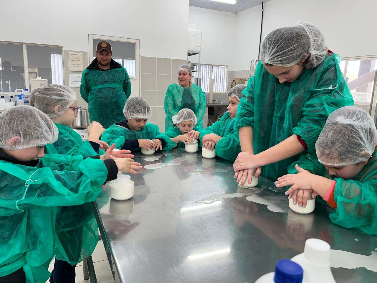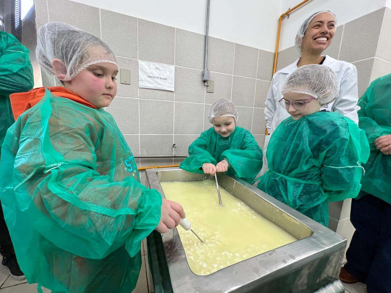 No minicurso, os pequenos foram divididos em duas turmas e aprendem lições sobre manejo do gado e procedimentos sanitários para garantir a qualidade do leite. Com auxílio das professoras Andrea Badaró e Fabiane Picinin, do curso de Engenharia de Alimentos, se aprofundam no processo de fabricação, desde a dosagem dos produtos até o enforme.
