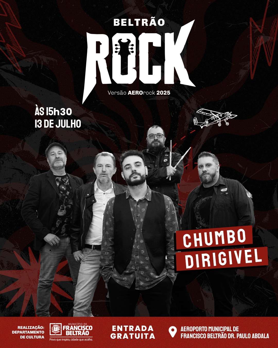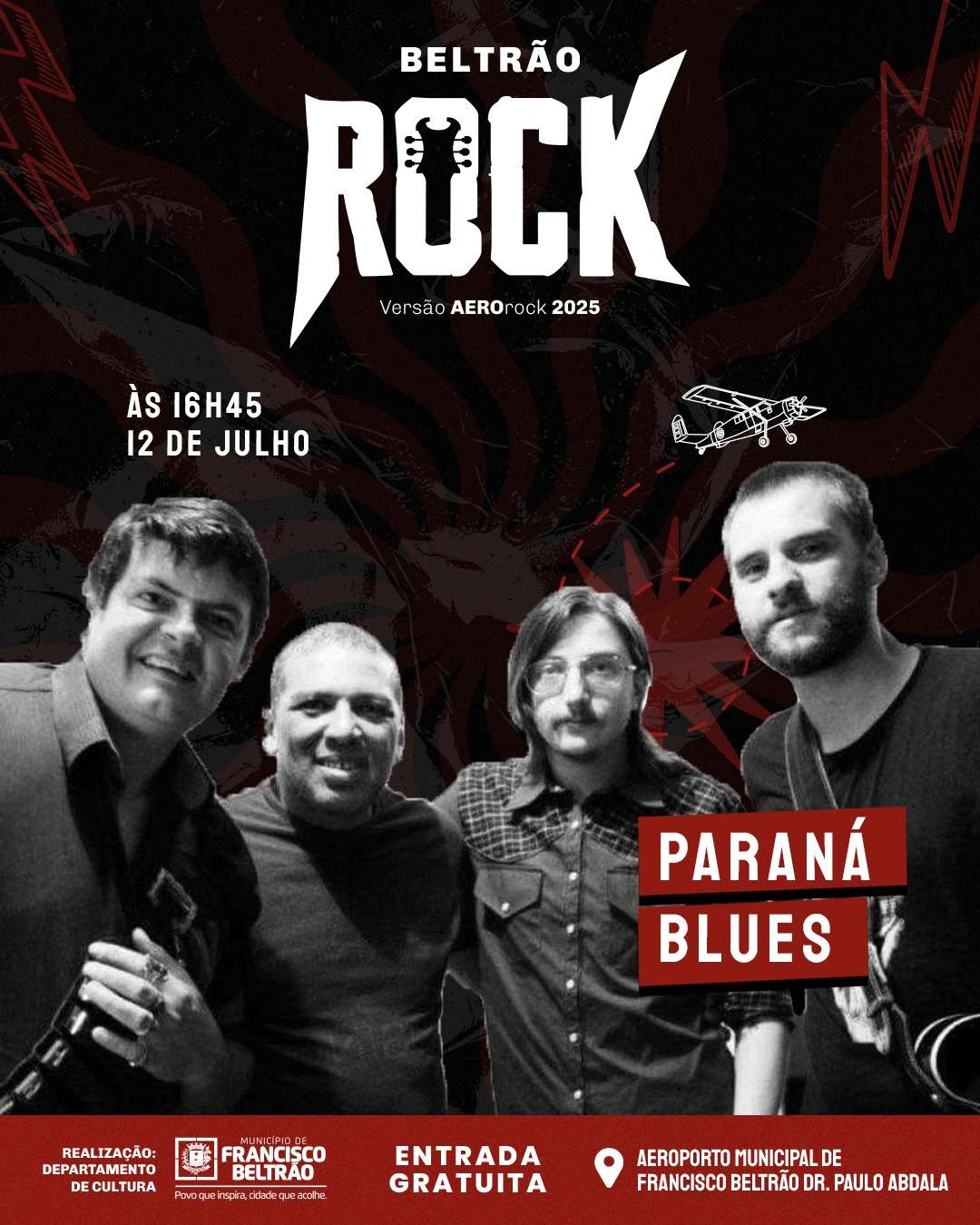 Francisco Beltrão vai celebrar o Dia do Rock com um grande festival de música e aviação, no aeroporto municipal. O evento será realizado nos dias 12 e 13 de julho (sábado e domingo), com entrada gratuita.
