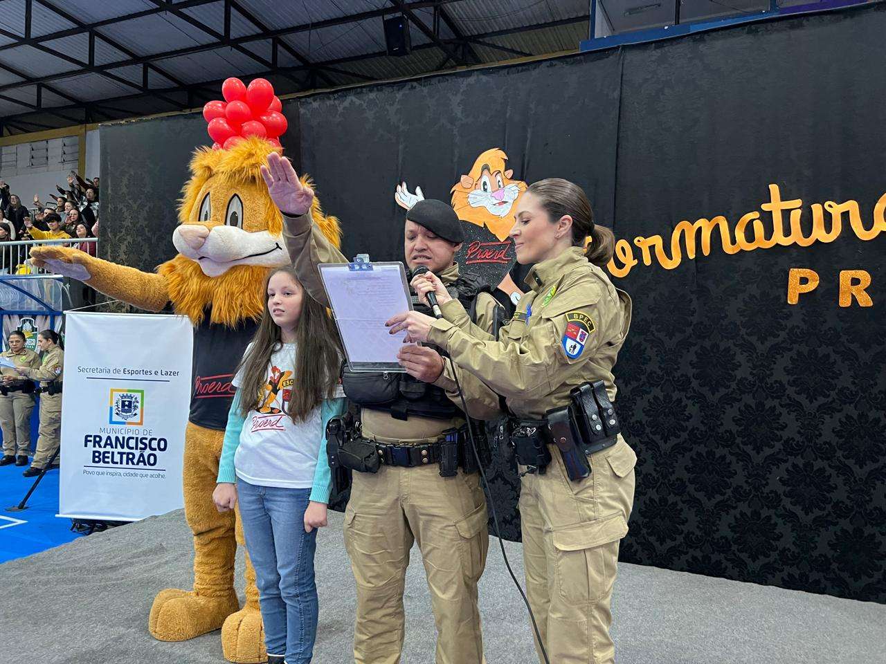Na noite de quinta-feira, (03) aconteceu no Ginásio Arrudão foi realizada a primeira formatura do Programa Educacional de Resistência às Drogas e à Violência (Proerd) deste ano de 2025 em Francisco Beltrão. Neste semestre, as aulas foram aplicadas para 575 estudantes de 5º anos, de 26 turmas diferentes. Ao todo oito escolas municipais receberam as aulas.