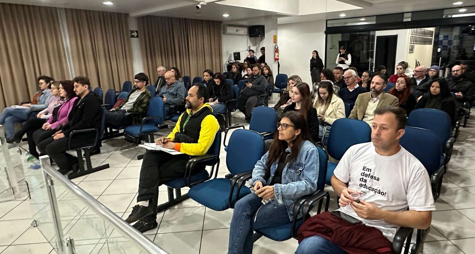 A iniciativa é do vereador Marcos Folador e contou com a presença de educadores, especialistas, estudantes, familiares, representantes da sociedade civil e oito vereadores da Casa Legislativa, tendo na coordenação o presidente Cidão Barbiero. Também participaram Anelise Marx, Pedro Tufão Filho, Mara Fornazari Urbano, Aline Biezus, Maria de Fátima e Emanuel Venzo.