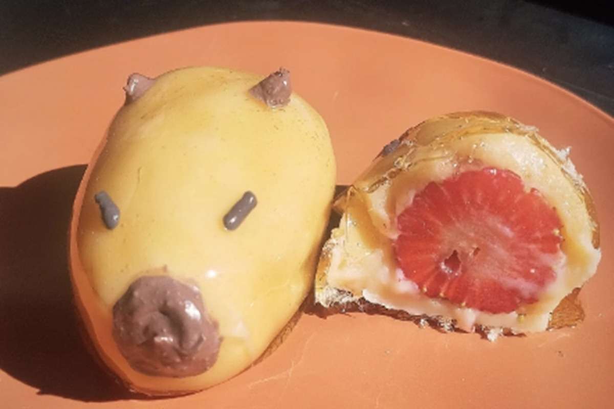 Para os amantes de doces em formato de animais, uma confeitaria inovou ao transformar o tradicional morango do amor na encantadora capivara do amor. A receita segue o mesmo preparo clássico, mas a montagem ganha um toque especial: o quitute é moldado no formato de uma capivara, com detalhes feitos com brigadeiro.