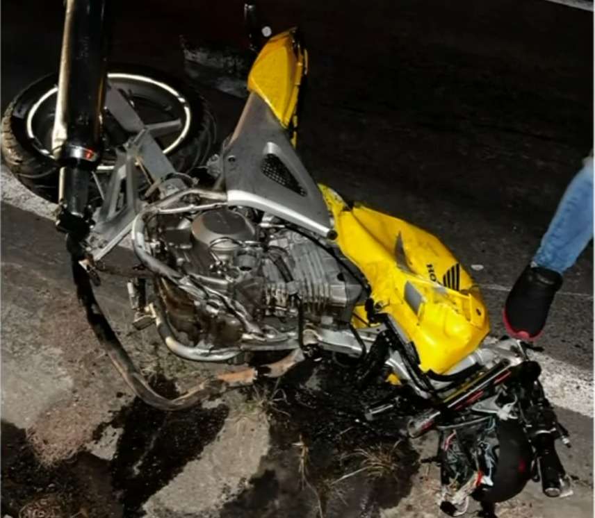 Quando a viatura da Polícia Militar chegou, a moto estava caída às margens da pista com várias avarias. Um dos carros foi encontrado atravessado na via com a frente totalmente destruída e o outro estava metros à frente.