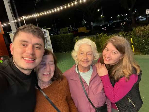 Luan, a avó Lola, a tia-avó Yolanda e a mãe Simone no parque de diversões em Curitiba — Foto: Luan Gonçalves dos Santos