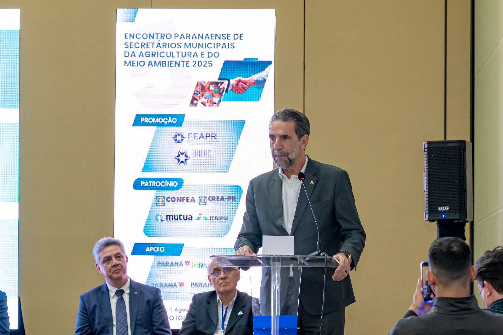 O diretor-geral brasileiro da Itaipu Binacional, Enio Verri, participou quarta-feira (06) da abertura do Encontro Paranaense de Secretários Municipais da Agricultura e do Meio Ambiente 2025, em Foz do Iguaçu (PR). O evento é organizado pela Federação dos Engenheiros Agrônomos do Paraná (FEAPR), com apoio da Itaipu, entre outras instituições.