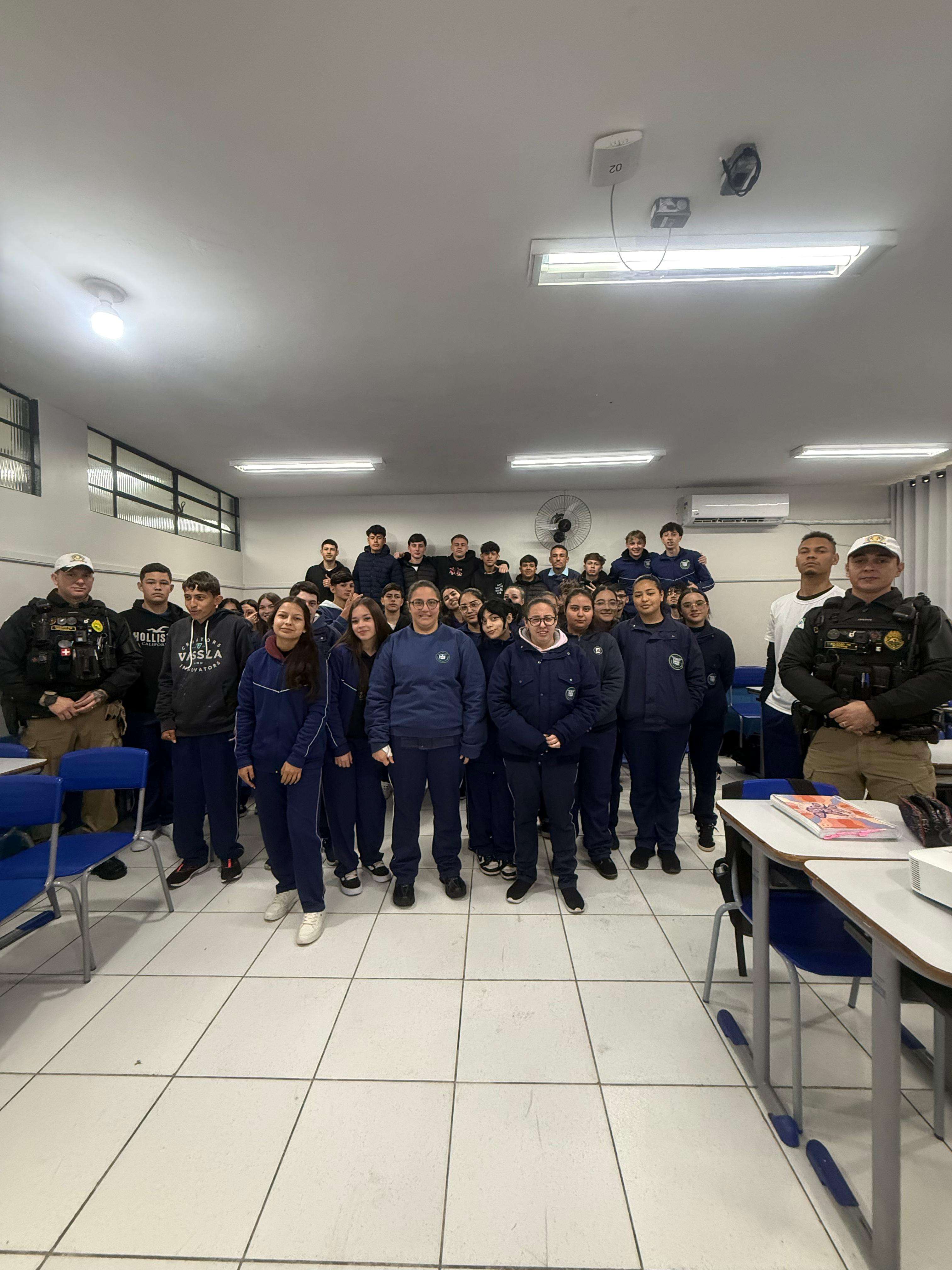 Na manhã desta terça-feira (12), o Pelotão de Trânsito do 21º Batalhão da Polícia Militar do Paraná (PMPR) promoveu mais uma ação do Projeto Jovem no Trânsito, no Colégio Estadual Cívico-Militar Vicente de Carli.
