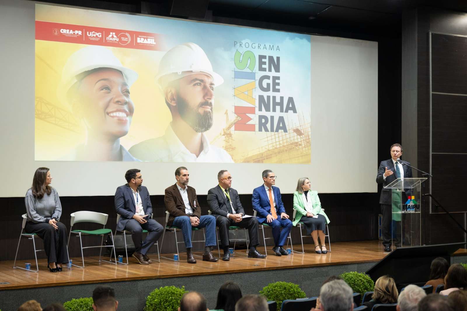 Também participaram da cerimônia os diretores de Itaipu Renato Sacramento (técnico executivo) e Luiz Fernando Delazari (jurídico), além de autoridades do Crea-PR e da UEPG, e prefeitos e prefeitas dos municípios selecionados.