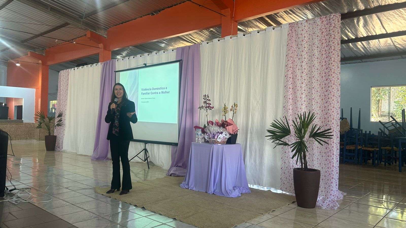 Na tarde de sexta-feira (15), cerca de 150 mulheres participaram de uma palestra sobre violência doméstica no salão comunitário de Boa Esperança do Iguaçu. O encontro contou com a presença da promotora de Justiça de Dois Vizinhos, Larissa Batista Vasconcelos, e da equipe da Polícia Militar.