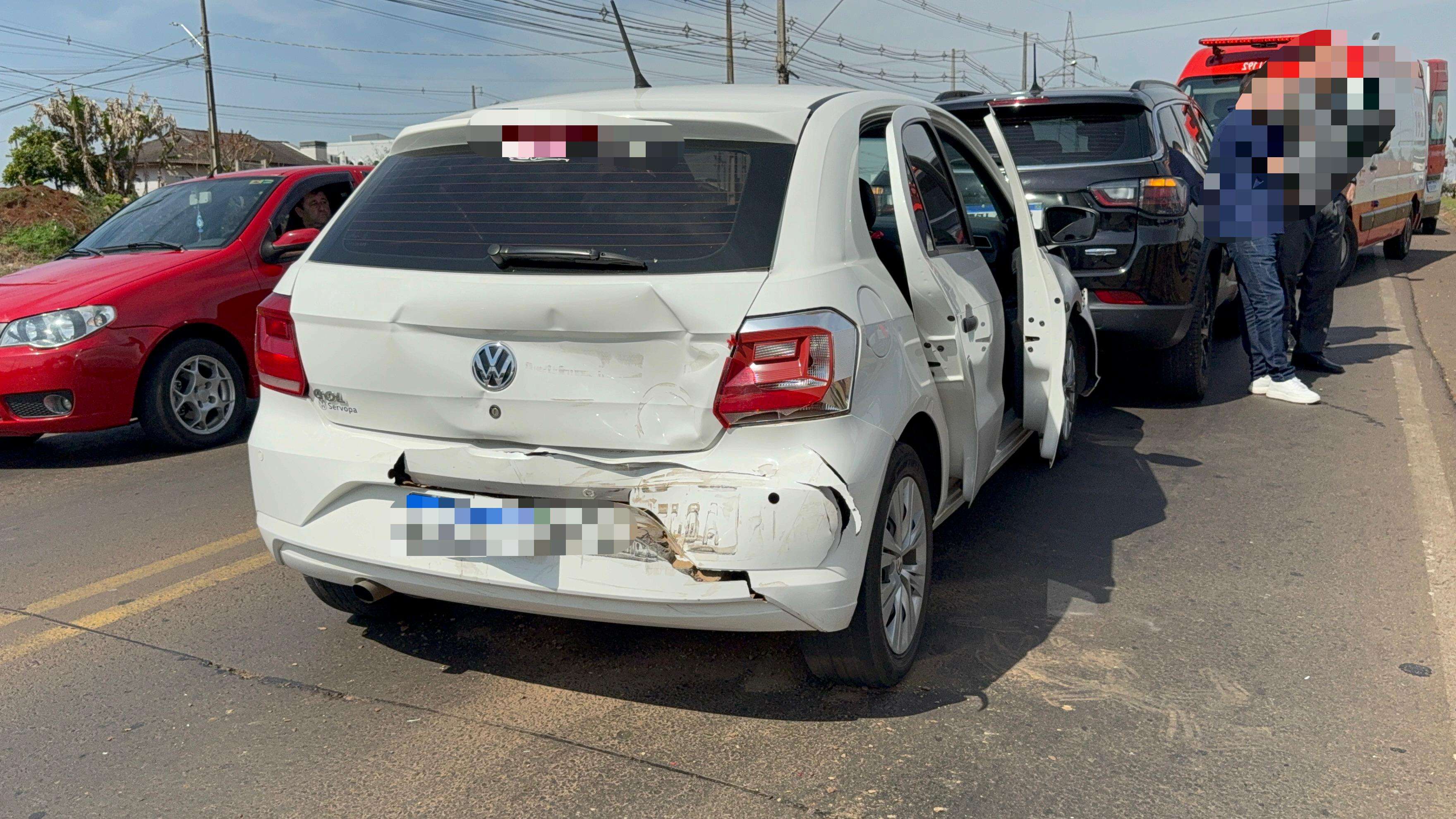A batida envolveu três veículos: um VW/Fox, um VW/Gol e um Jeep/Compass. Conforme as informações apuradas, todos seguiam no mesmo sentido em direção ao trevo de Itapejara D’Oeste quando, em frente à UPA no semáforo, o motorista do Fox não conseguiu frear a tempo e acabou colidindo contra a traseira do Gol, que foi empurrado contra o Jeep.
