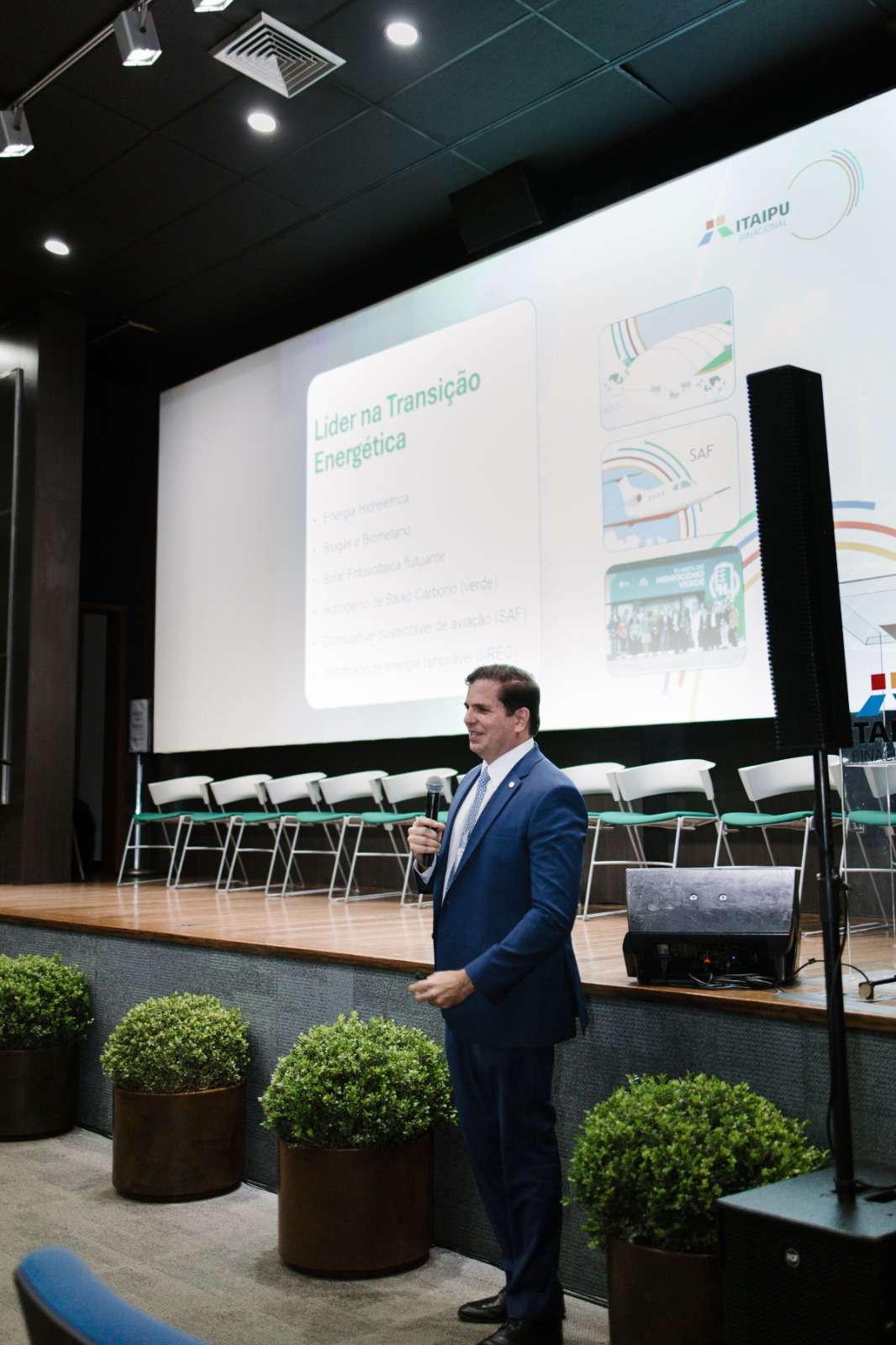 Por fim, o diretor destacou os investimentos em modernização tecnológica e transição energética, com foco em fontes renováveis como biogás, solar flutuante e hidrogênio verde. E falou também sobre os Certificados de Energias Renováveis (REC), que são títulos que comprovam que a eletricidade consumida é gerada a partir de fontes renováveis, mercado no qual a Binacional deve entrar em breve. “Itaipu é mais que energia. É desenvolvimento social, ambiental e tecnológico”, concluiu.