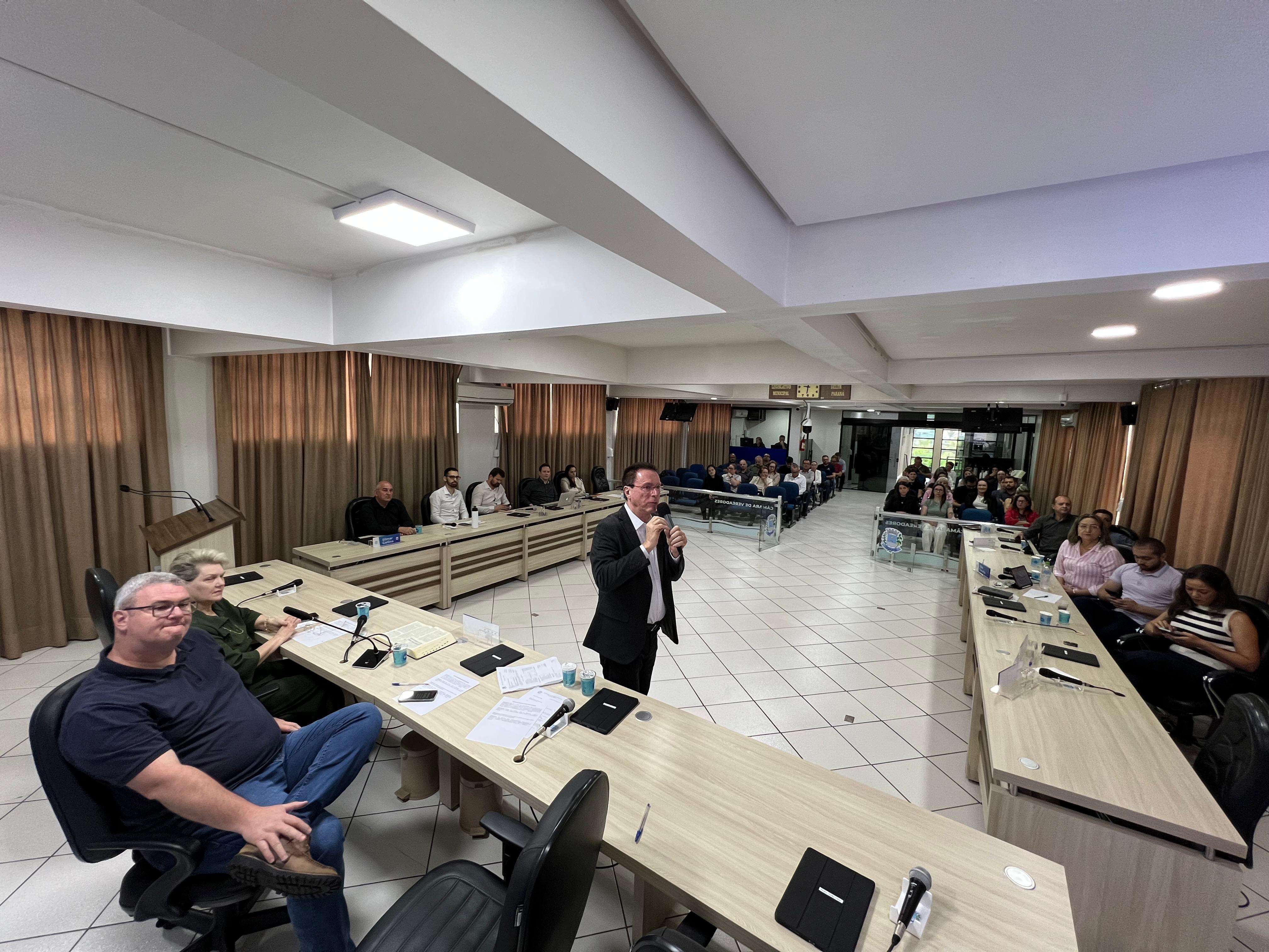 A entrega ocorreu durante a audiência pública de prestação de contas do quadrimestre, que detalha a saúde financeira de áreas como a Saúde, Educação e Assistência Social, além das finanças gerais da Prefeitura. O momento foi acompanhado pela vice-prefeita, Lurdinha Bertani, presidente da Comissão de Finanças e Orçamento, Fernando Misturini, secretários, vereadores Maria de Fátima, Aline Biezus, Bruno Savarro e Julio Spada e representantes de instituições.