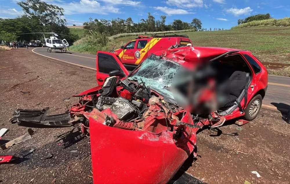 O homem ficou preso às ferragens e morreu no local. No mesmo veículo, também estava uma mulher que foi socorrida pelos bombeiros.