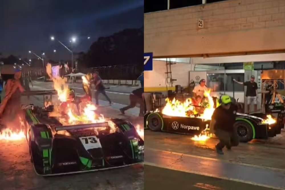 O piloto Leandro Totti saiu de um carro em chamas durante uma corrida no Autódromo Internacional Ayrton Senna de Londrina, no norte do Paraná. O caso aconteceu enquanto os pilotos eram trocados e o carro estava sendo abastecido.