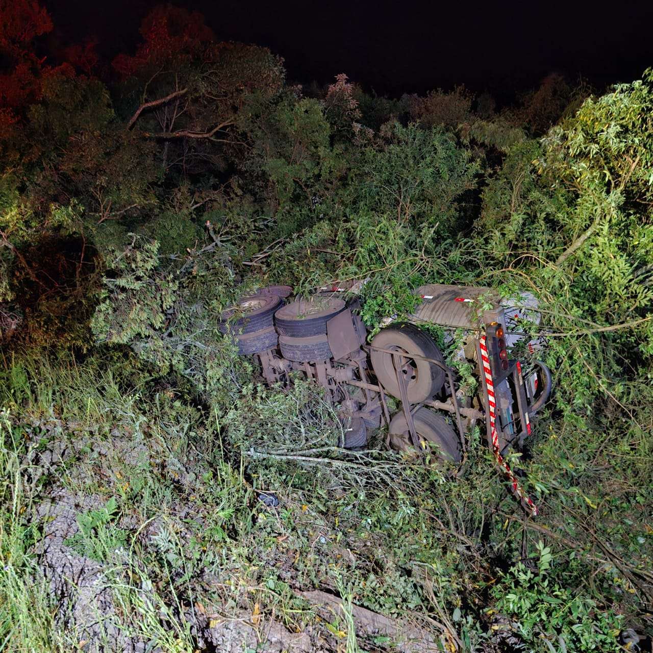 Na noite de sexta-feira (28), um caminhão trator com semirreboque carregado com produtos de origem animal saiu da pista e tombou na PRC-280, em Palmas, Paraná, deixando o condutor ferido. O acidente ocorreu por volta das 23h00 e foi atendido pela 6ª Companhia do Batalhão de Polícia Rodoviária.