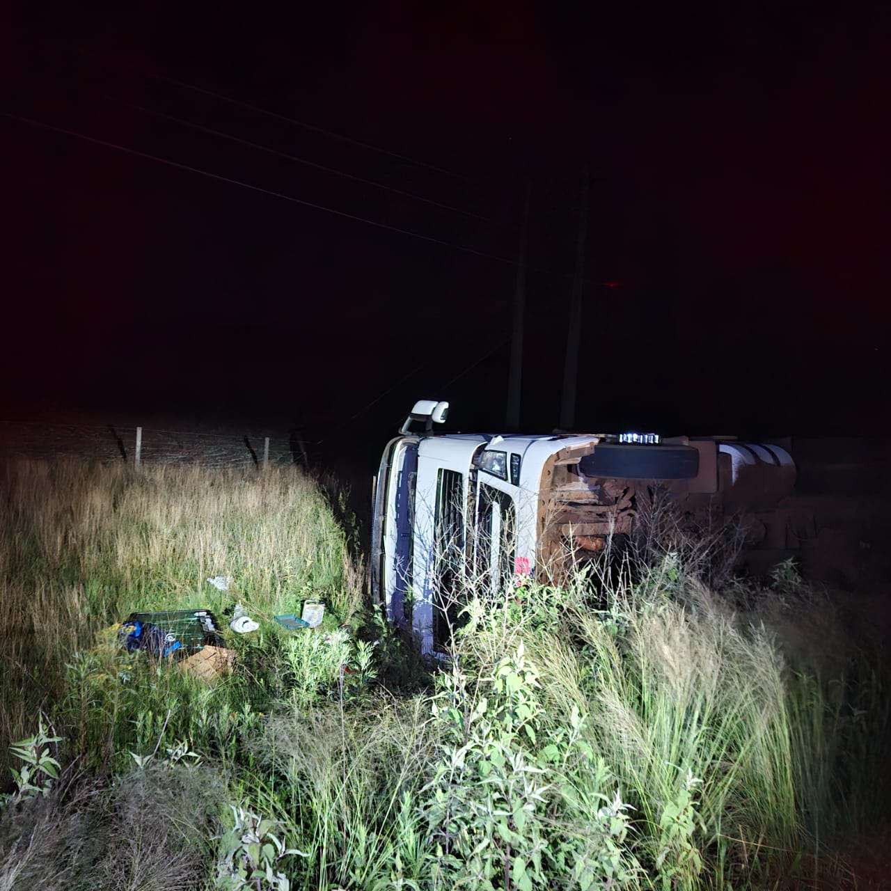 Ao chegarem ao local, os policiais constataram que um caminhão Volvo/FH, acoplado a um semirreboque Triel, havia tombado e parado fora da pista. O motorista já havia sido encaminhado pelo SIATE para atendimento médico hospitalar antes da chegada da equipe.