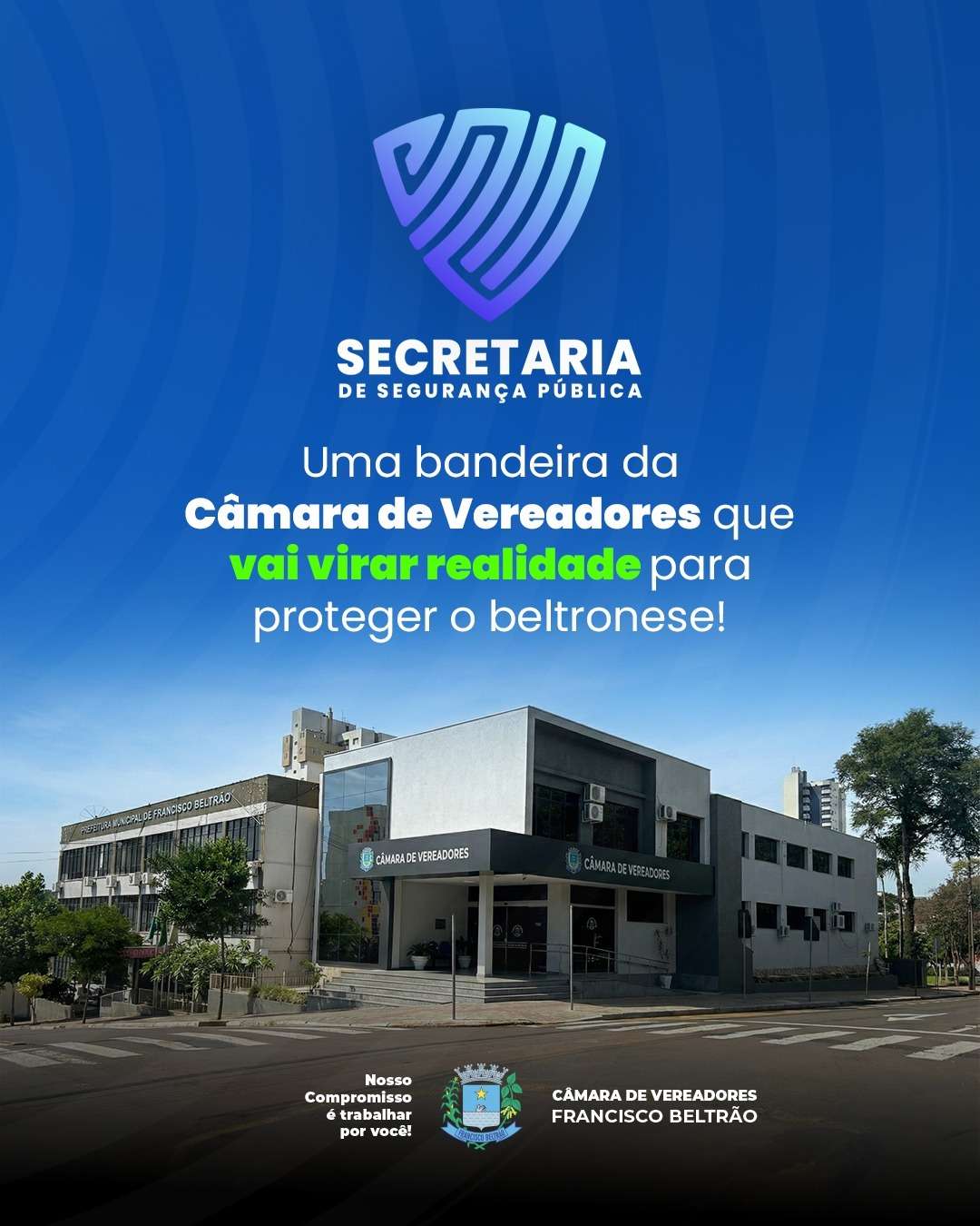 Mais uma bandeira da Câmara de Vereadores de Francisco Beltrão, a criação da secretaria municipal de Segurança Pública, vai se tornar realidade. O Legislativo recebeu do Executivo um projeto de lei prevendo uma reorganização da estrutura administrativa da prefeitura, dentre elas a criação da pasta da segurança.
