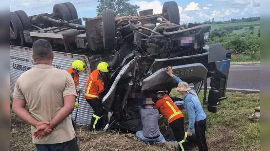 O Corpo de Bombeiros também esteve no local e realizou o resgate do motorista, que ficou preso às ferragens. De acordo com os relatos, o condutor estava consciente no momento do atendimento e não houve registro de feridos graves.