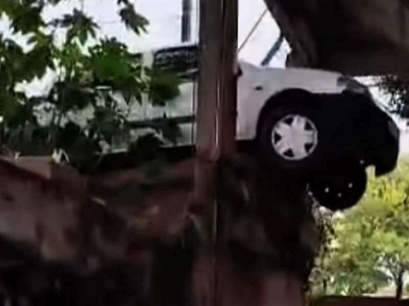Carro invadiu a sede da EMDUR (Empresa de Desenvolvimento Urbano e Rural de Toledo) na quarta-feira (1º), véspera de Ano Novo, em Toledo e ficou pendurado na rampa de carga de materiais, colocando em risco a segurança e o patrimônio da empresa.