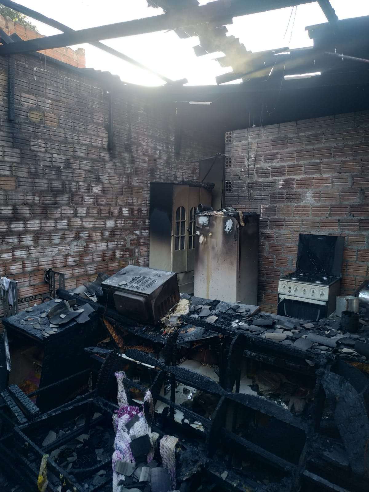 Casa foi destruída por incêndio na Rua Natal Otaviano Borges Meireles, no bairro Jardim Internacional, em Guaíra, no Oeste do Paraná, na tarde deste domingo (5).