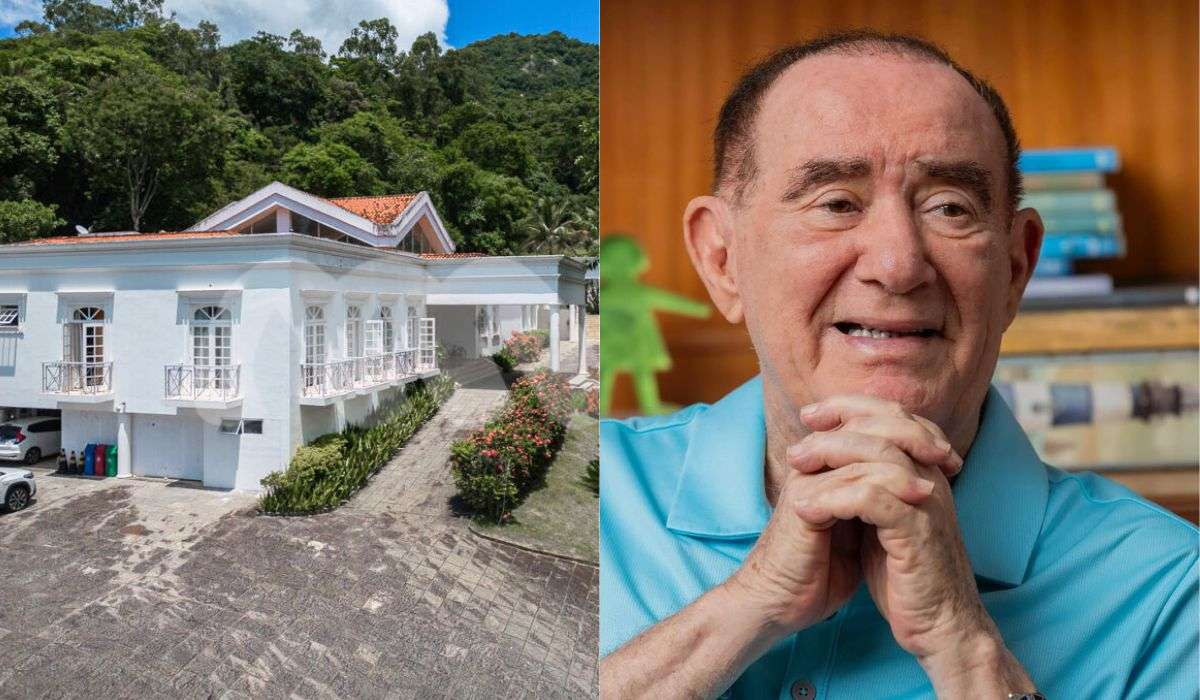A mansão do ator e apresentador Renato Aragão, conhecido pelo personagem Didi Mocó, está à venda por R$ 16 milhões na zona oeste do Rio de Janeiro. O imóvel de luxo, listado desde fevereiro de 2023, possui quadra de tênis, campo de futebol, quatro suítes, hidromassagem e heliponto.