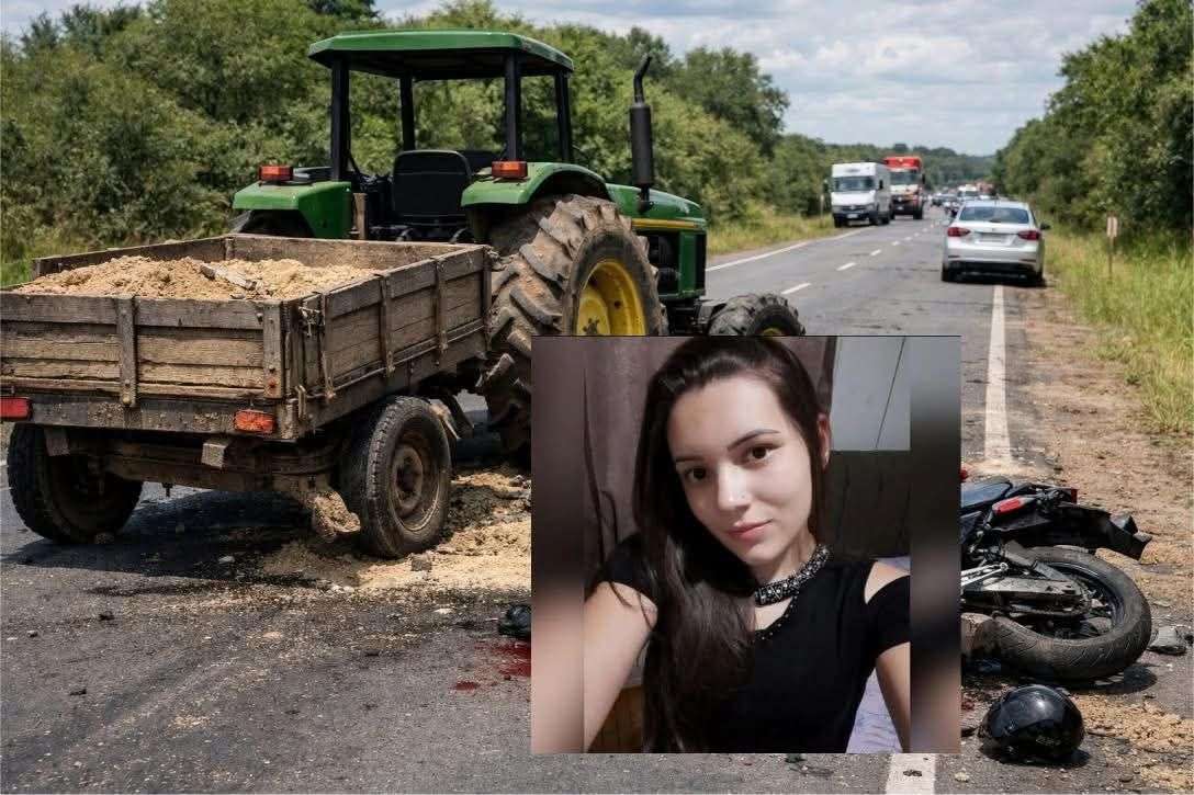 De acordo com as informações, Ana Paula conduzia uma motocicleta Honda CG-150/Fan que colidiu na traseira de uma carretinha carregada de silagem, tracionada por um trator.