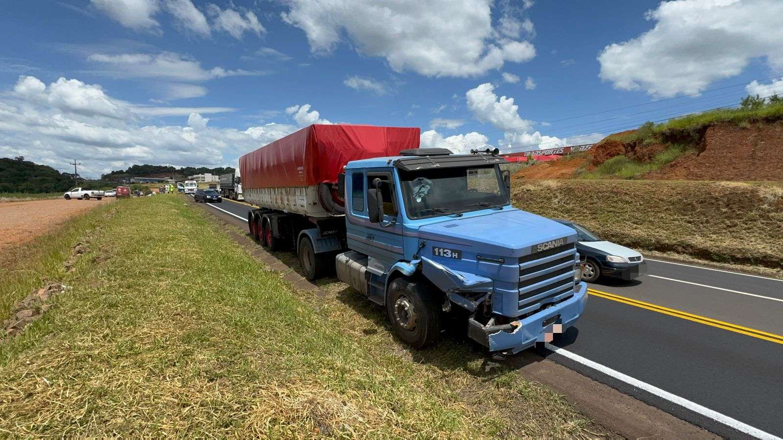 Um acidente de trânsito foi registrado no início da tarde desta quarta-feira (21) na PR-280, em Marmeleiro. A colisão envolveu um automóvel Voyage e um caminhão Scania 113H.