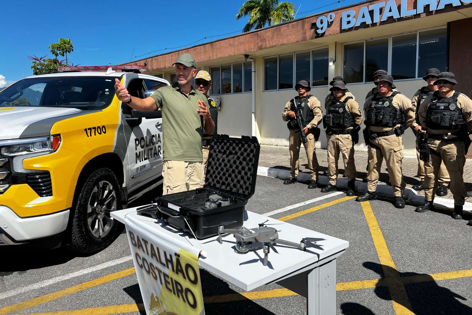 A Polícia Militar do Paraná (PMPR) entregou, na manhã desta sexta-feira (13), um drone DJI Mavic 2 Enterprise ao 9º Batalhão de Polícia Militar, em Paranaguá. O equipamento será utilizado pela Patrulha Costeira e amplia a capacidade de fiscalização, monitoramento e apoio operacional em toda a faixa litorânea do Estado. O equipamento já será utilizado durante o Carnaval, período marcado pelo aumento expressivo do fluxo de turistas e pela intensificação das ações de segurança pública.