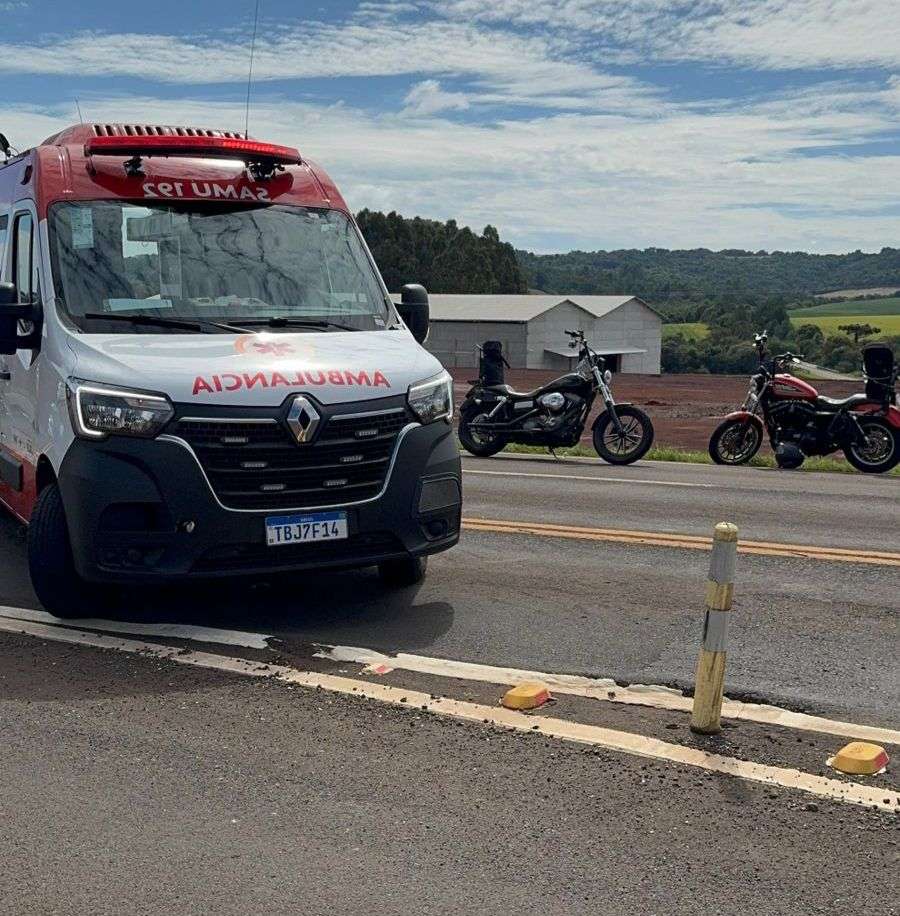 Uma colisão foi registrada na manhã deste domingo (15) na rodovia PR-180, no trecho que liga Marmeleiro a Campo Erê. O acidente envolveu duas motocicletas Harley-Davidson e um Volkswagen Gol.