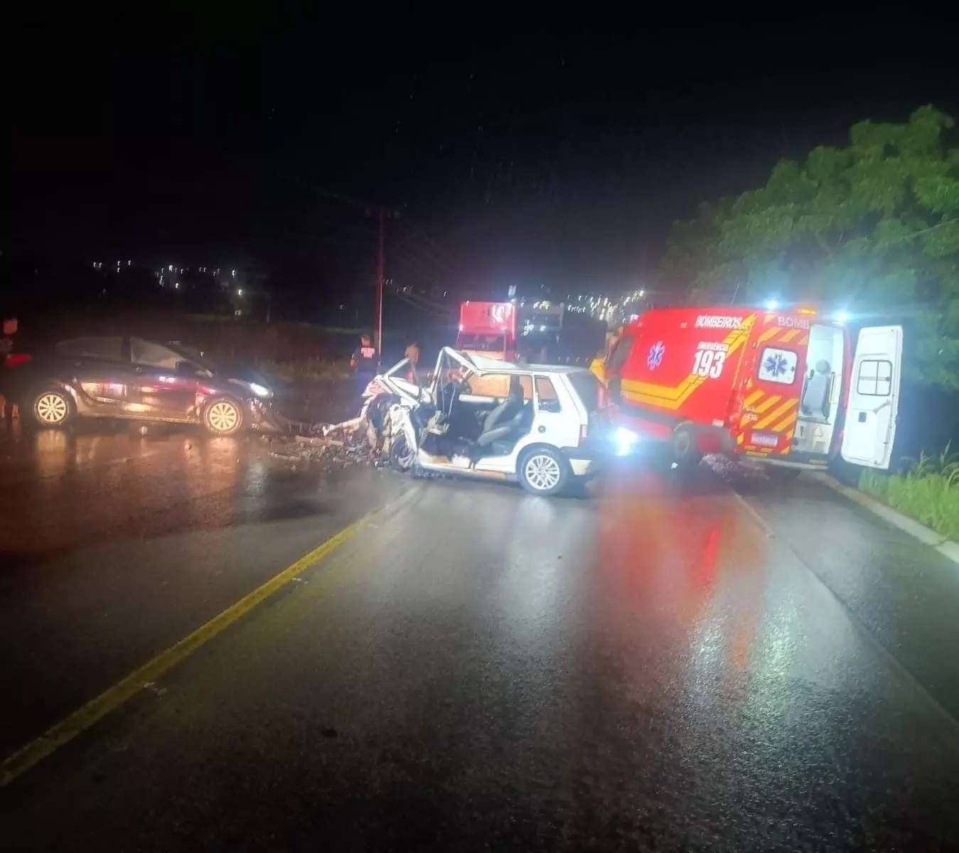 O outro veículo envolvido, um Hyundai HB20 também de Pouso Redondo, era conduzido por um homem de 27 anos. Ele já estava fora do carro no momento do atendimento, apresentando fratura aberta na perna esquerda, na região do joelho, além de escoriações pelo corpo. Após imobilização, a vítima foi encaminhada ao hospital do município com ferimentos graves.