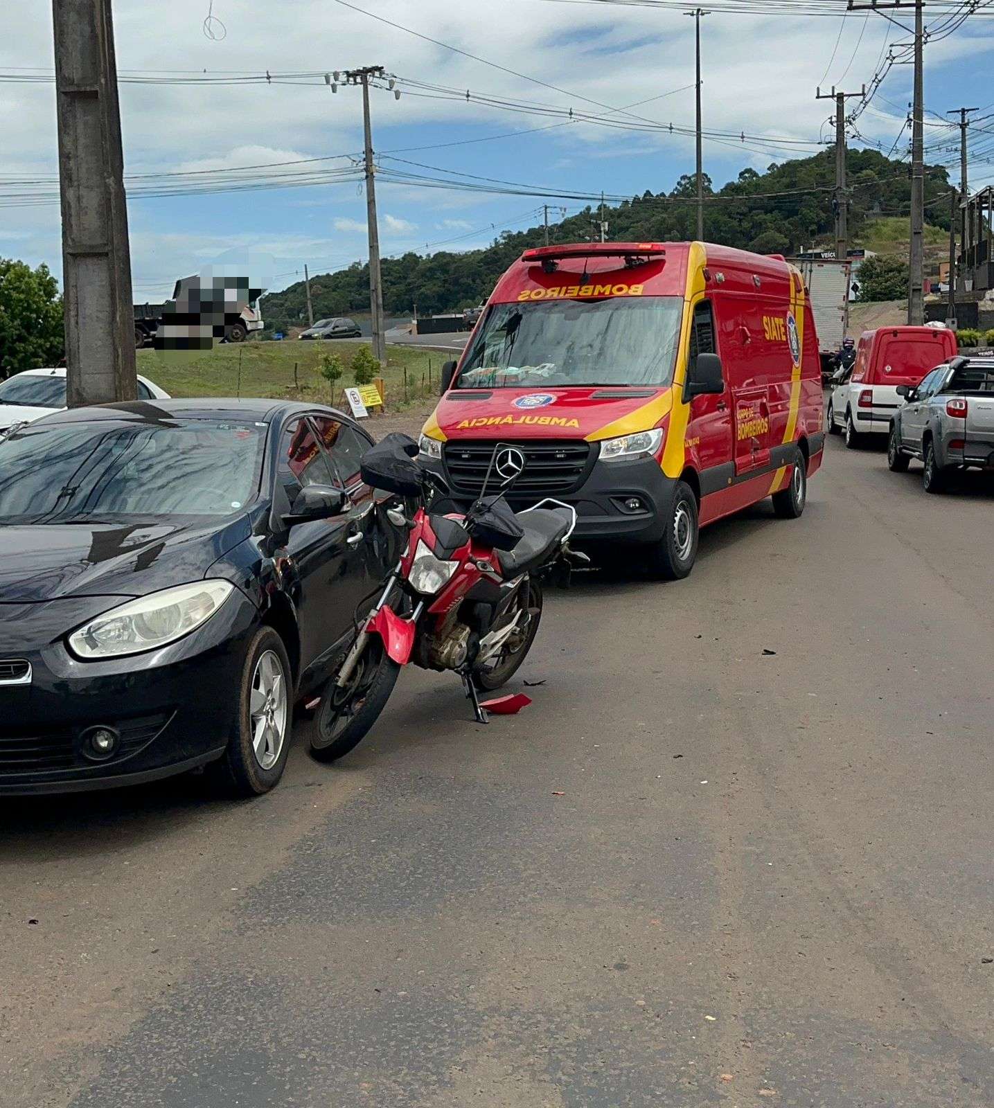 Equipes de atendimento foram acionadas para prestar socorro, e o condutor da motocicleta foi encaminhado à Unidade de Pronto Atendimento (UPA) para avaliação médica. Os ocupantes dos demais veículos não se feriram.