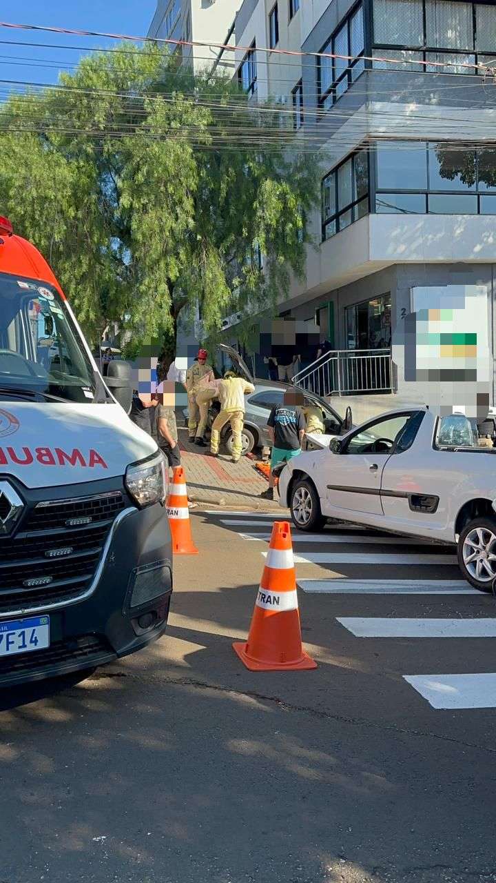 Um acidente foi registrado na manhã desta quinta-feira (26), na Rua Curitiba, no Centro de Francisco Beltrão. A colisão envolveu uma picape da Peugeot e um Celta.