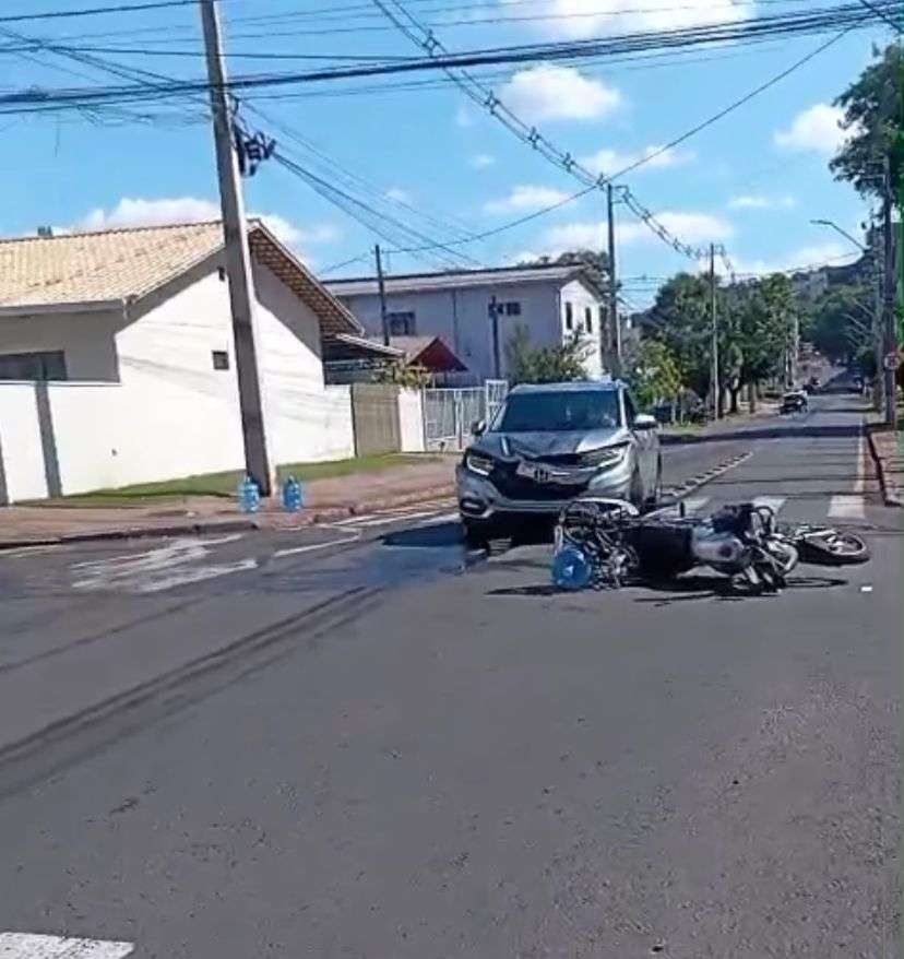 Um acidente de trânsito foi registrado na tarde desta quinta-feira (26), no cruzamento das ruas Pernambuco e Maringá, no bairro Vila Nova, em Francisco Beltrão. A colisão envolveu um carro e uma motocicleta.