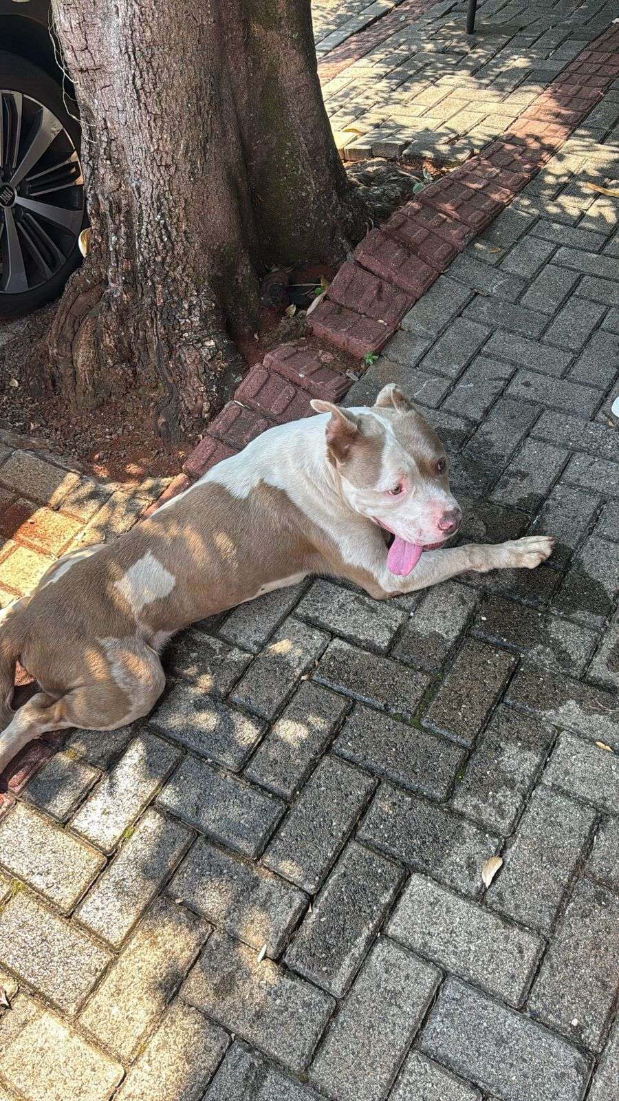 O animal foi visto na Rua dos Pardais bastante debilitado, apresentando sinais de sede e fome. Moradores que estavam próximos do local prestaram ajuda e ofereceram água e alimento ao cachorro, que agora está hidratado e alimentado.