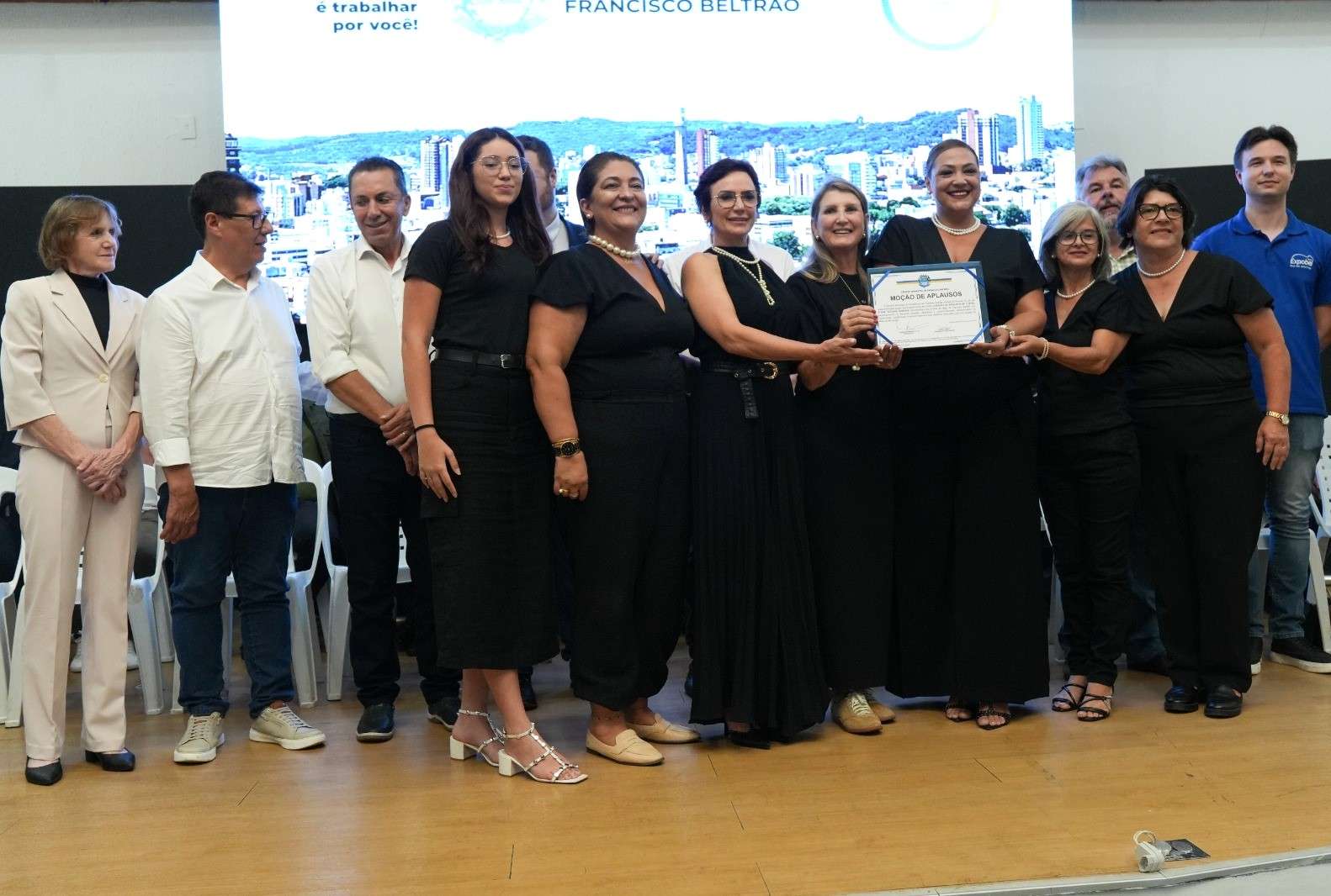 O auditório do Centro de Eventos do Parque de Exposições de Francisco Beltrão ficou completamente lotado na noite de quarta-feira (11) na Sessão Solene realizada pela Câmara de Vereadores, na programação da Expobel. Além de prestigiar a maior feira do Sudoeste, os vereadores também homenagearam 23 pessoas e entidades que fazem a diferença na vida dos beltronenses e no desenvolvimento do nosso município.