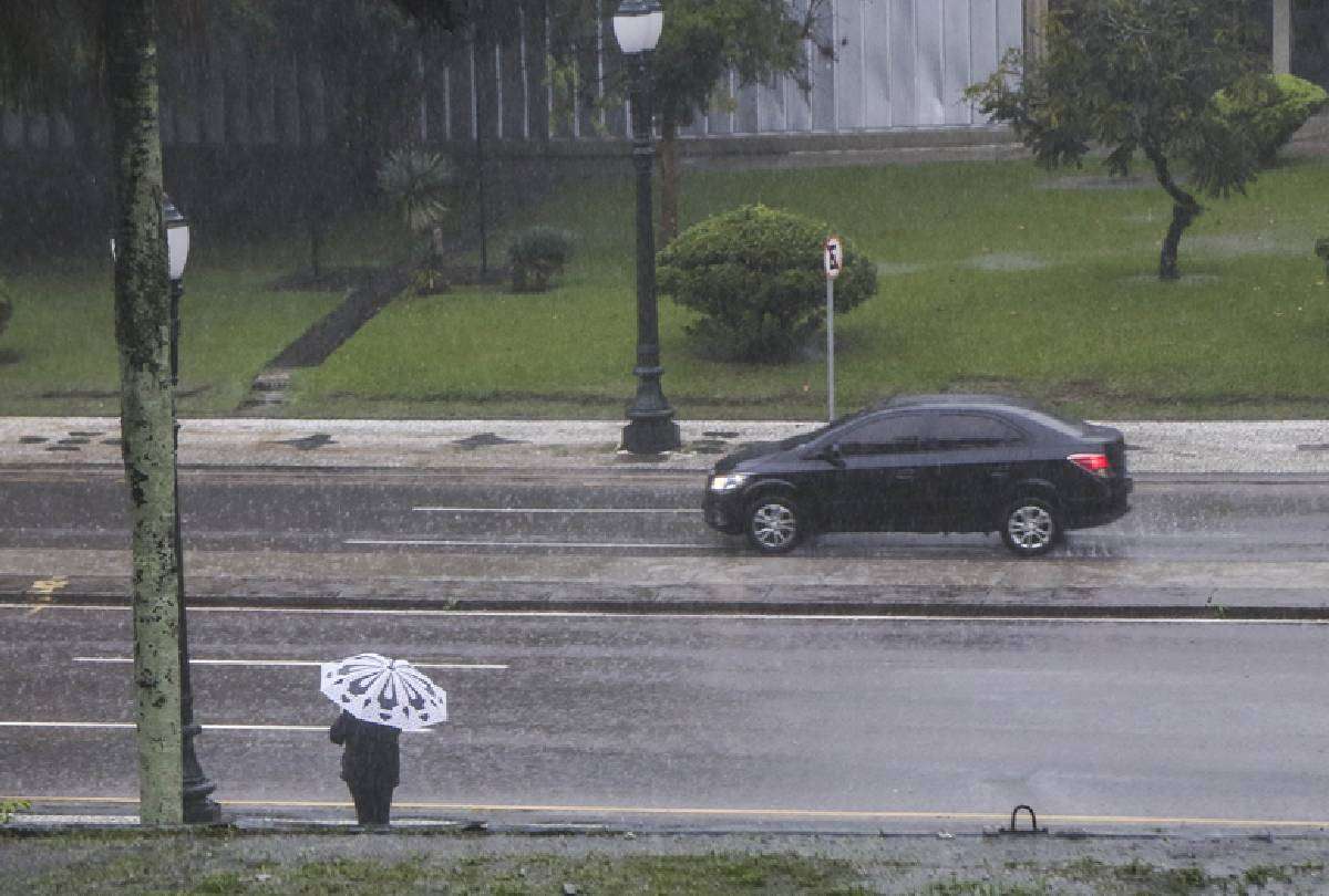 Durante o alerta de tempestade, Curitiba está sob risco de chuva entre 20 e 30 mm/h ou até 50 mm/dia, ventos intensos entre 40 e 60 km/h e queda de granizo.