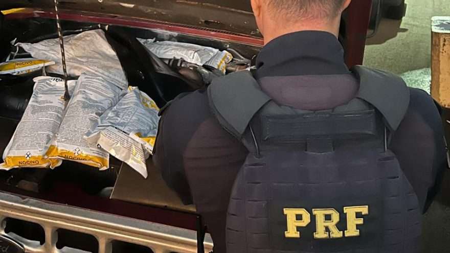 A Polícia Rodoviária Federal (PRF) apreendeu, na madrugada desta quinta-feira (26), uma carga de agrotóxicos contrabandeados que estava escondida em um local inusitado: o compartimento do motor de uma caminhonete Ford F100.