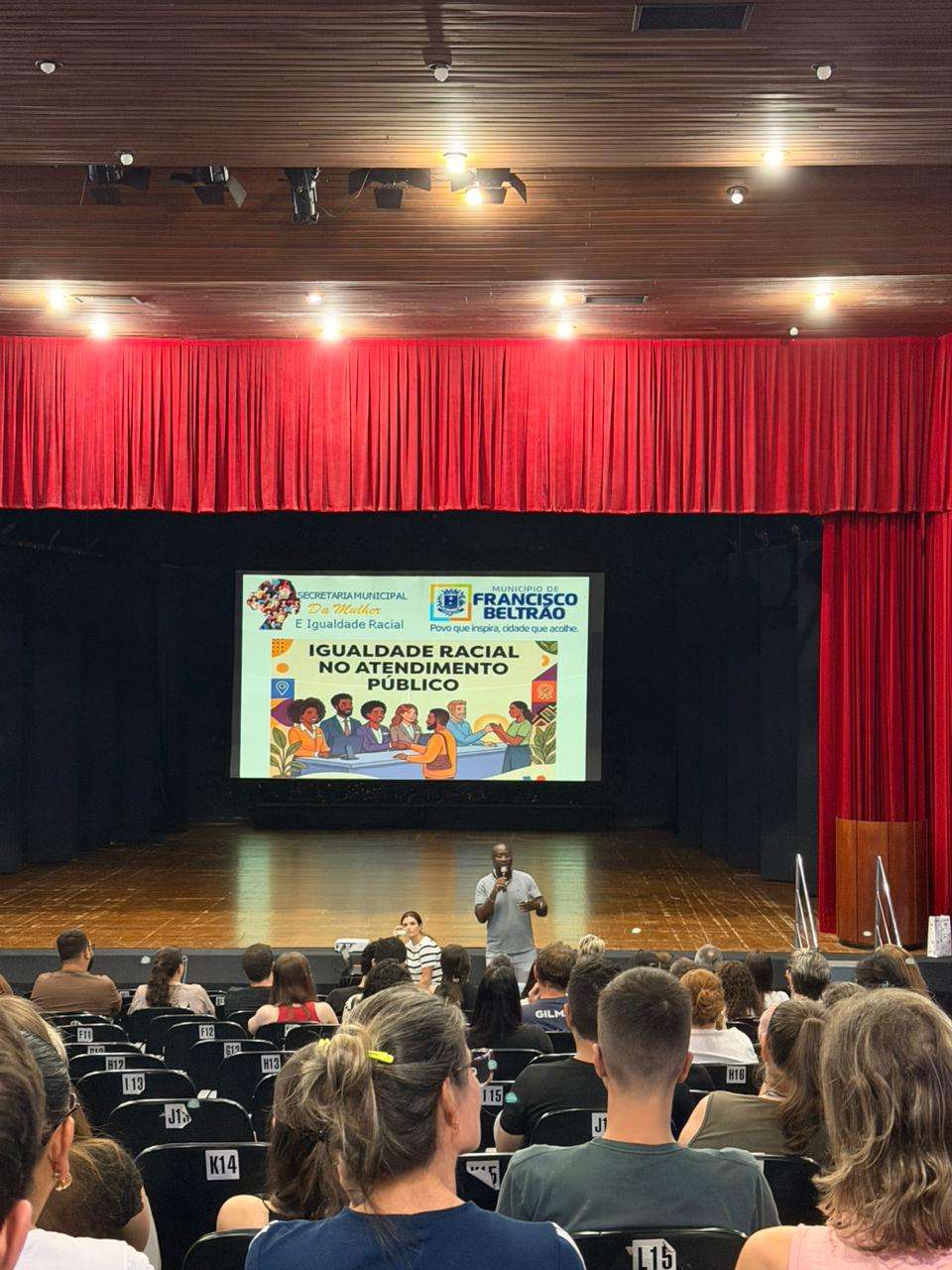 Servidores municipais de Francisco Beltrão participaram, na tarde desta quarta-feira (25), no Teatro Eunice Sartori, de uma capacitação voltada ao atendimento público. A ação teve como objetivo promover conhecimento sobre a igualdade racial, o respeito às diferenças e a qualificação dos serviços prestados à população.