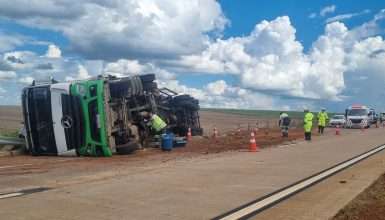 De acordo com as informações, o veículo estava carregado com mercadorias de uma transportadora quando acabou tombando às margens da rodovia. Apesar do impacto, o caminhão não ficou sobre a pista, o que evitou maiores transtornos no fluxo de veículos.
