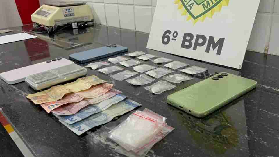 Durante a abordagem, um homem, de 28 anos, e uma mulher, de 29 anos, foram detidos por suspeita de envolvimento com a venda de drogas. Além deles, outro homem foi encaminhado como usuário.