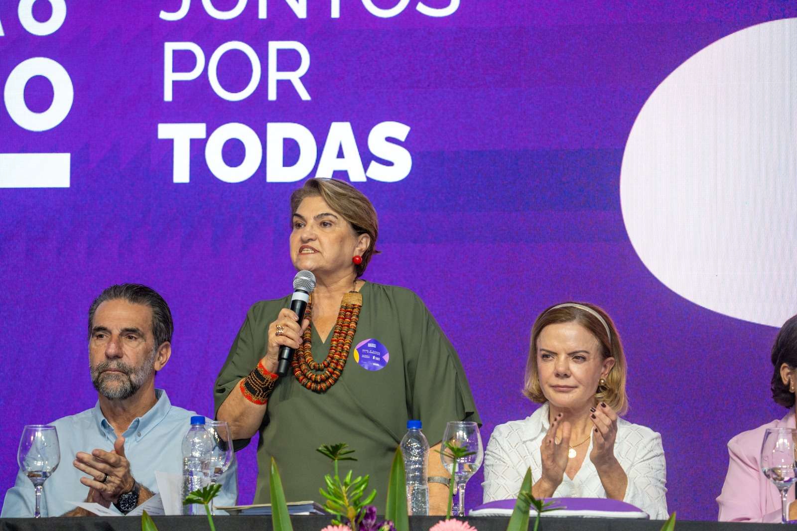 Assim como a ministra das Mulheres, a ministra Gleisi Hoffmann destacou a prioridade que a primeira-dama Janja Silva e o presidente Luiz Inácio Lula da Silva têm dado ao combate ao feminicídio e à violência contra a mulher. Por isso, foi criado um programa emergencial de ações neste mês de março. Reforçou também o trabalho conjunto de forças de segurança para a detenção de agressores que já estavam com mandado de prisão, mas estavam soltos.