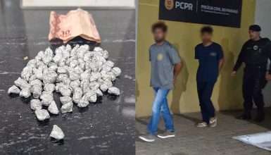 Durante a revista, os agentes encontraram com os suspeitos um total de 103 pedras de crack. A Guarda Municipal foi acionada para prestar apoio, sendo que a Patrulha Ambiental auxiliou no encaminhamento.