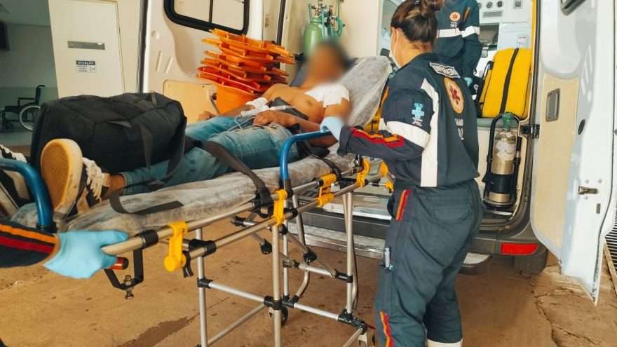 Diante do ferimento, ele foi socorrido pelo Samu e encaminhado à uma unidade hospitalar para reavaliação médica.