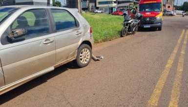 Duas pessoas ficaram feridas em um acidente de trânsito registrado na Rua do Cowboy esquina com a Rua Aparecida do Norte, em Cascavel na tarde desta quinta-feira (2).